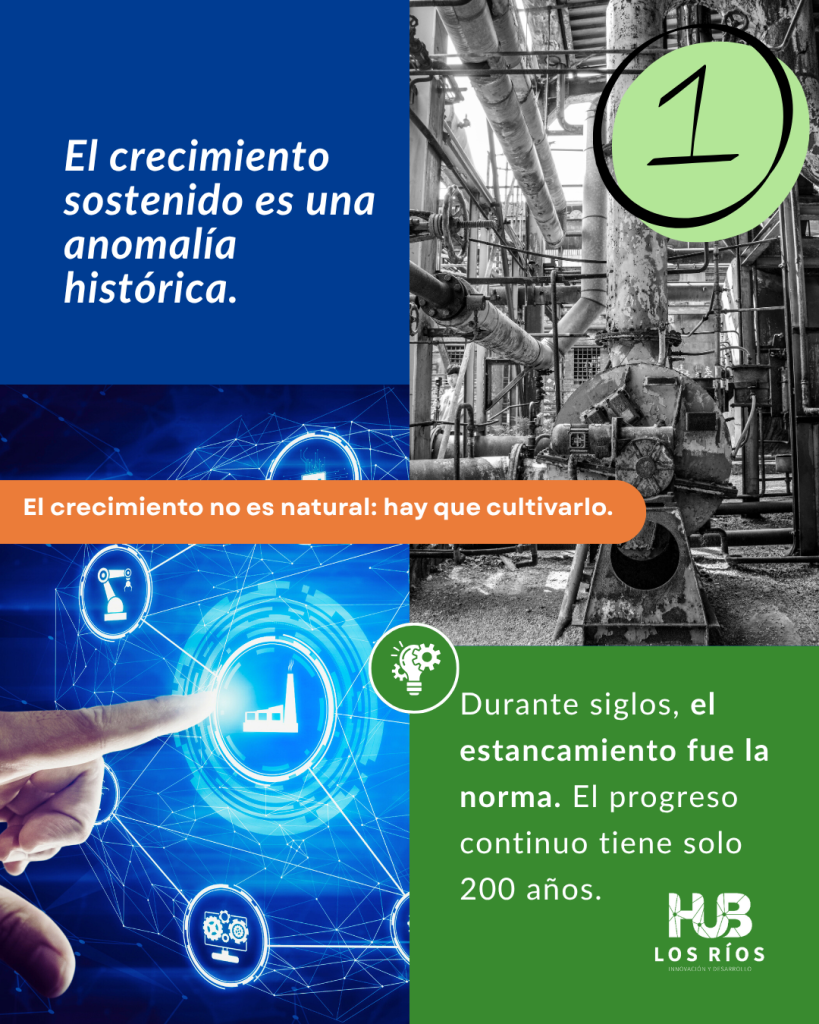 El progreso constante que hoy damos por hecho tiene solo dos siglos de antigüedad, y nació con la Revolución Industrial. Esta lección nos recuerda que el crecimiento es frágil: no ocurre por inercia, sino gracias a condiciones específicas que deben cultivarse. Ignorarlo es arriesgarse a perderlo.