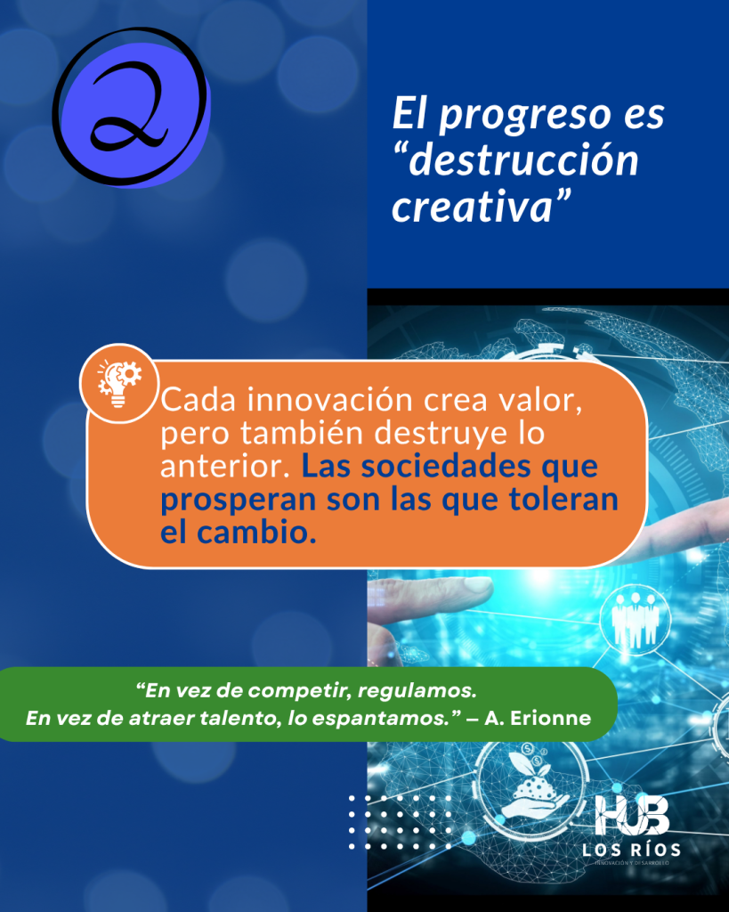Aghion y Howitt describen la innovación como un proceso que crea valor, pero también destruye lo anterior. Cada avance reemplaza modelos de negocio, empleos o estructuras que se vuelven obsoletos.