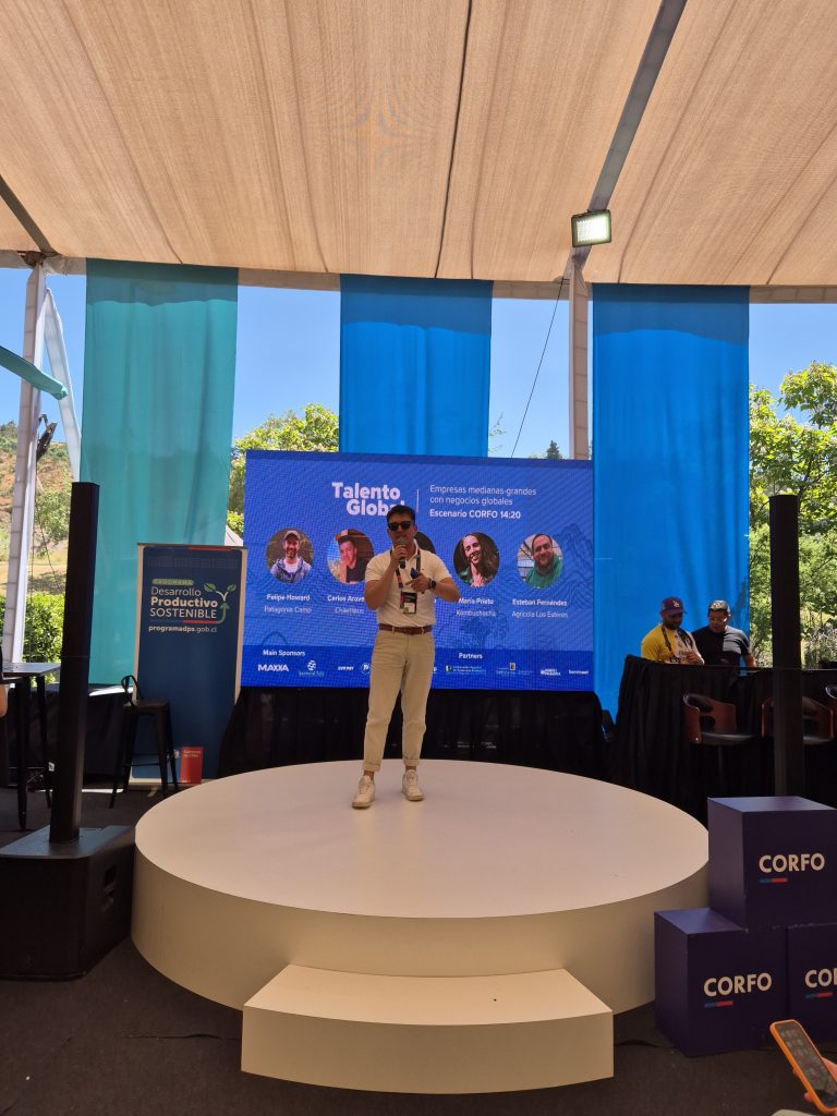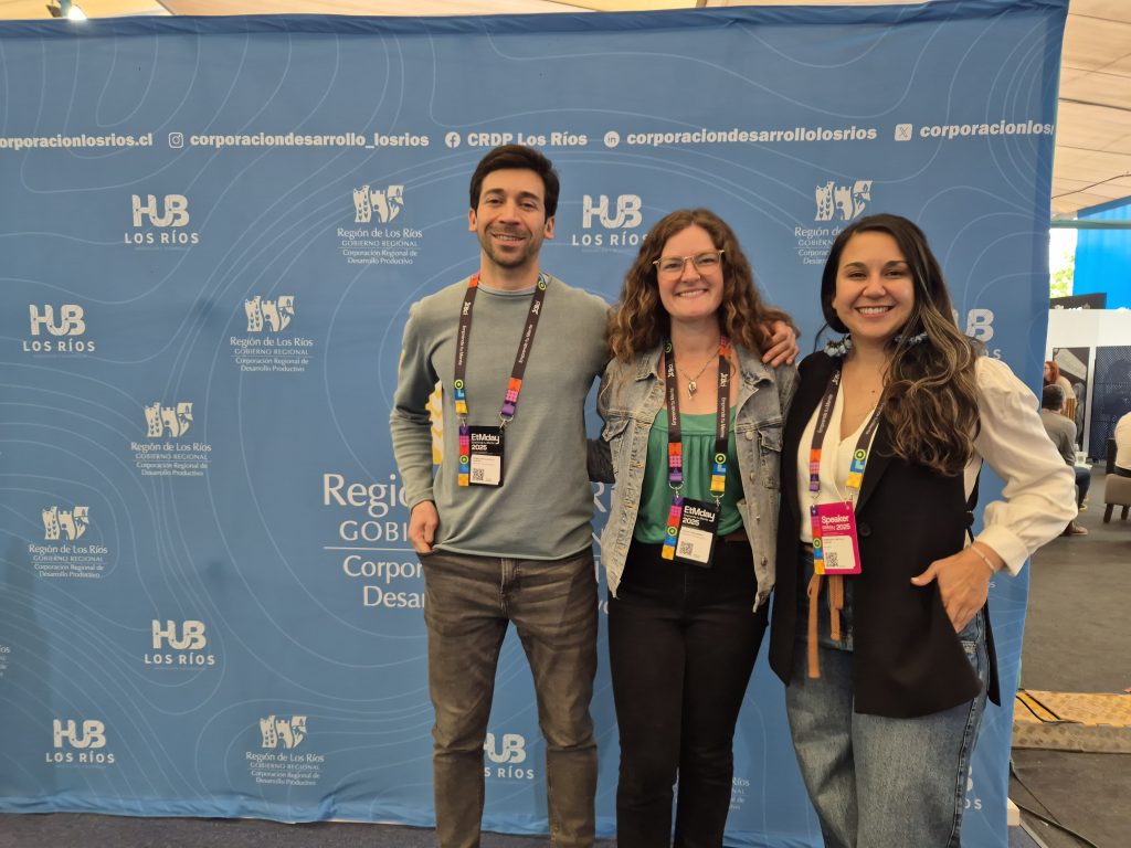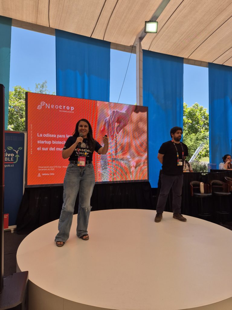 Asimismo, acompañamos a Francisca Castillo, cofundadora de Neocrop Technologies, quien representó a la Región de Los Ríos en el Desafío Glocal sobre el escenario principal. Su presentación mostró cómo la innovación desarrollada en nuestros territorios puede proyectarse al mundo, demostrando el potencial de los emprendimientos locales para escalar globalmente.